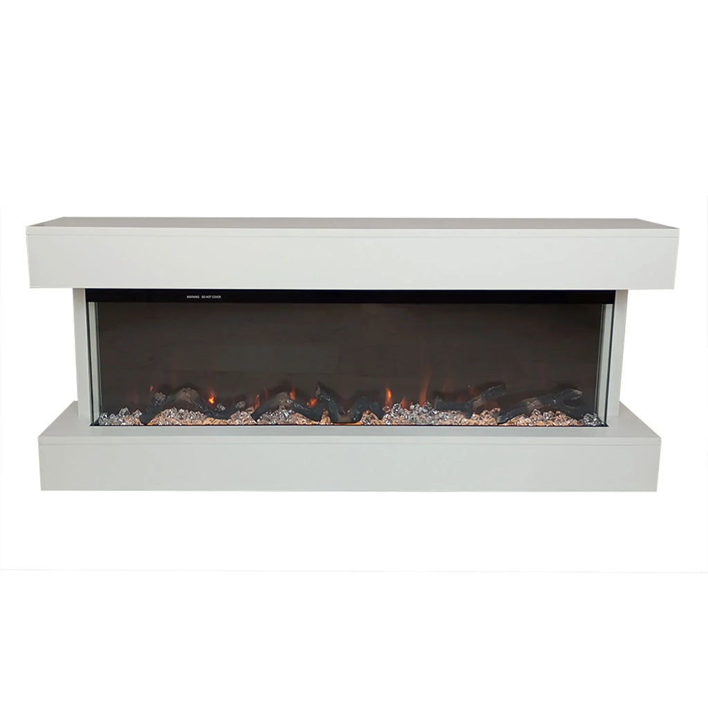 Camino Elettrico da Parete o Incasso Alaro Plus 127x18x52 cm Effetto Fiamma Telecomando in MDF Bianco