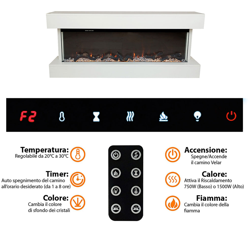 - FIAMMA REALISTICA: Fiamme regolabili in intensità e colore per un’atmosfera suggestiva a portata di telecomando.
