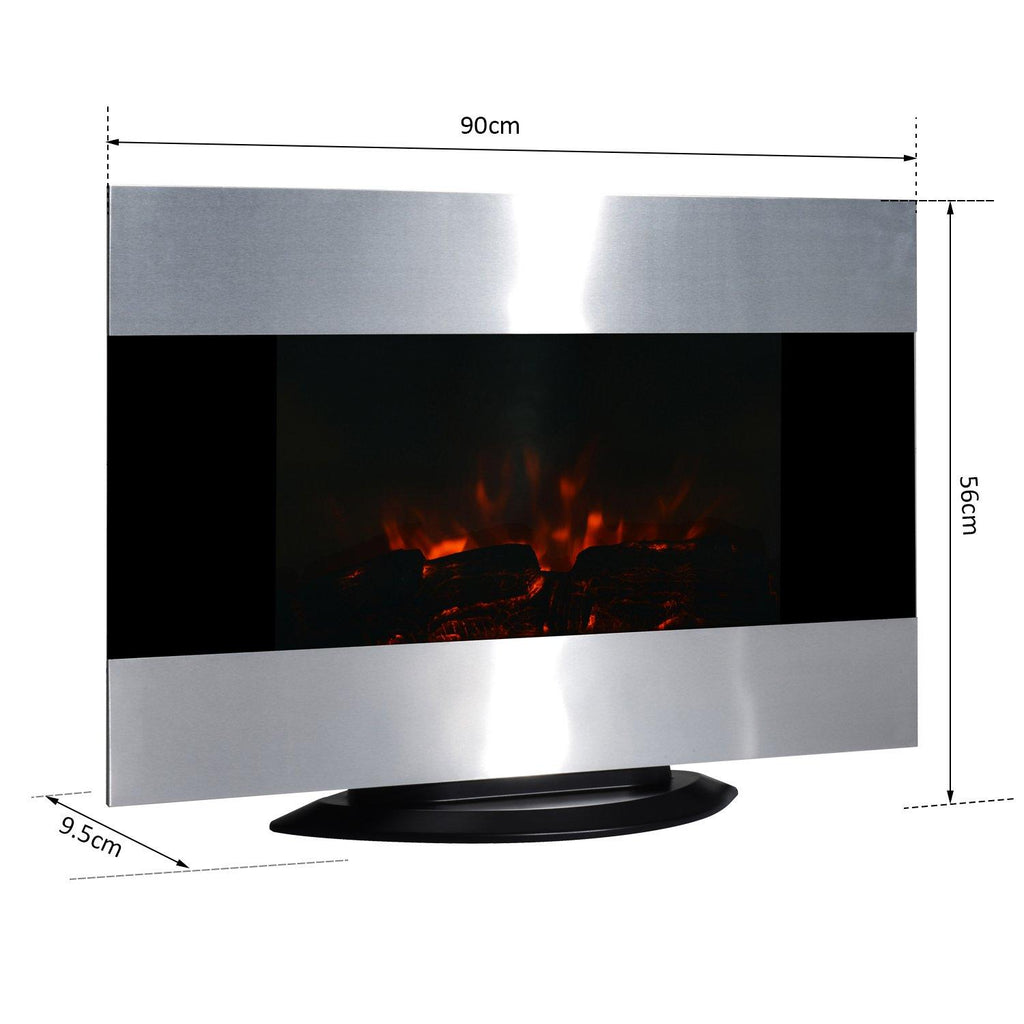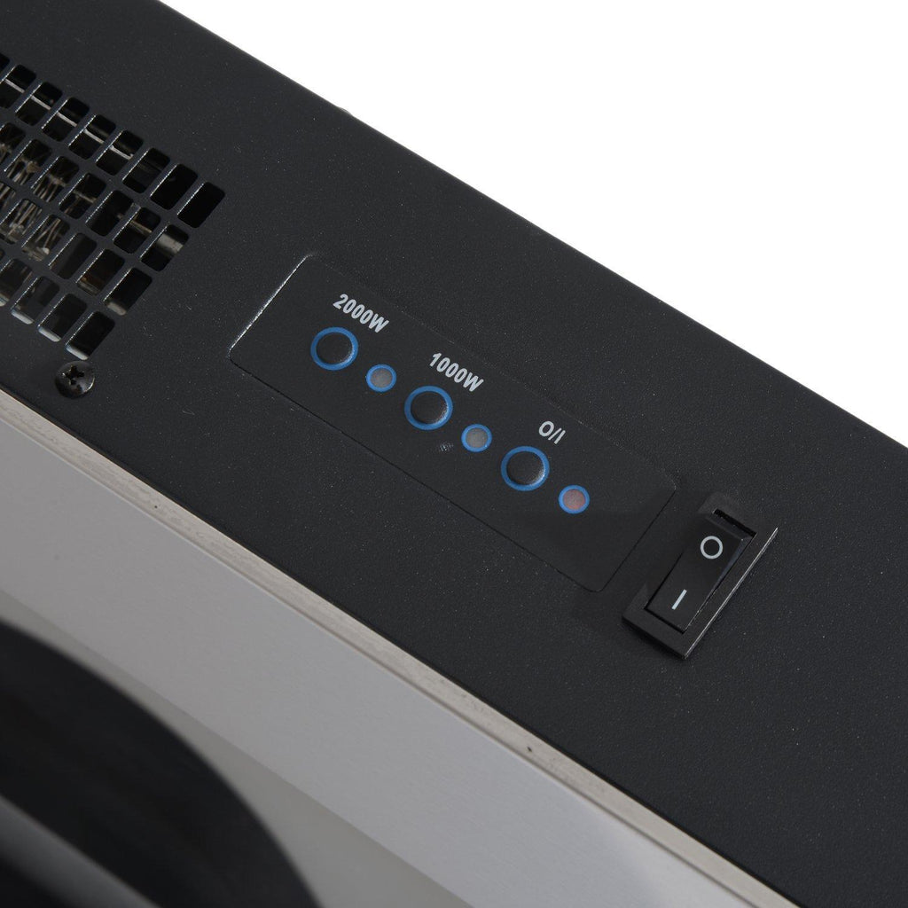 Cheminée Électrique Murale ou Sol Effet Flamme 1000W/2000W Acier Inoxydable et Noir