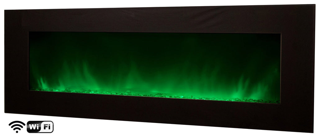 Cheminée murale modèle WIFI Volcano 5XL avec éclairage LED avec changement de couleur : 12 couleurs dont les variantes de rouge, vert, bleu, jaune. Grâce à l'application, disponible pour Android et iPhone, vous pouvez régler le thermostat, la programmation horaire et quotidienne directement depuis votre téléphone mobile. Effet flamme ultra réaliste grâce aux LED avec technologie Chemin'Arte. Il chauffe et meuble une pièce d'environ 30 m2. Télécommande incluse.