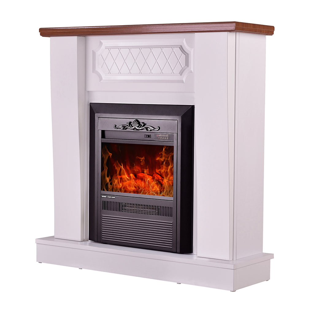 Camino Elettrico da Pavimento 101x100x30 cm Effetto Fiamma 2000W Asoli & Cristina Bianco/noce