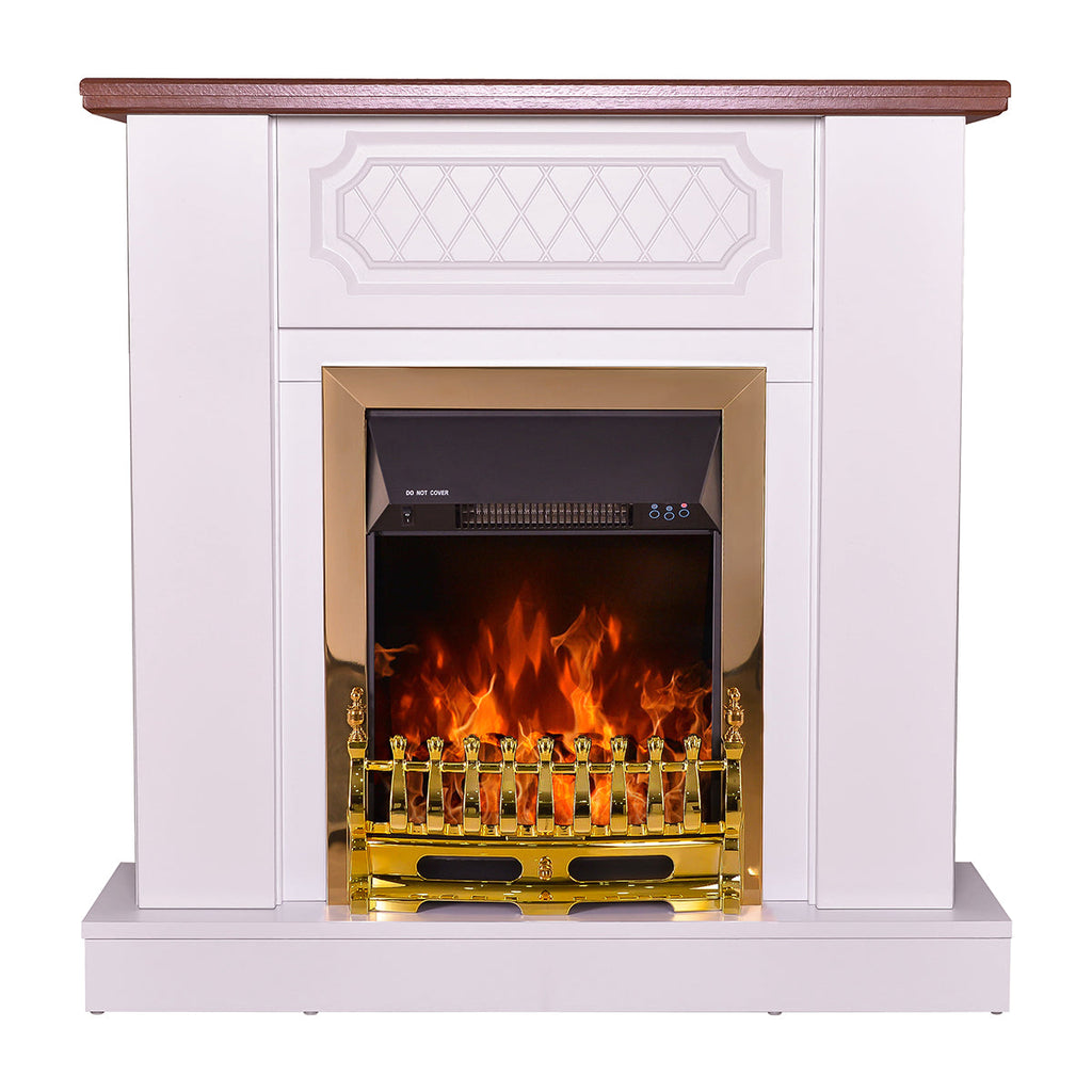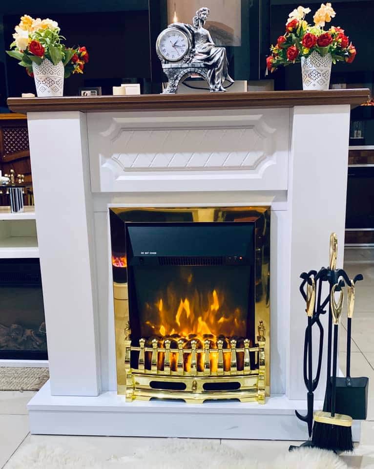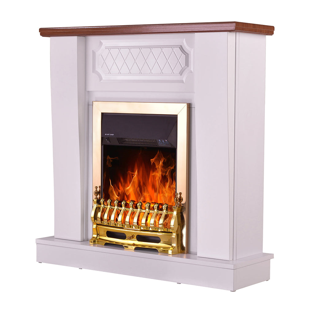 Camino Elettrico da Pavimento 101x100x30 cm Effetto Fiamma 2000W Asoli & Galileo gold Bianco/noce