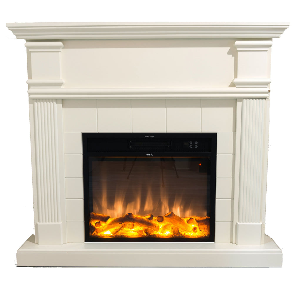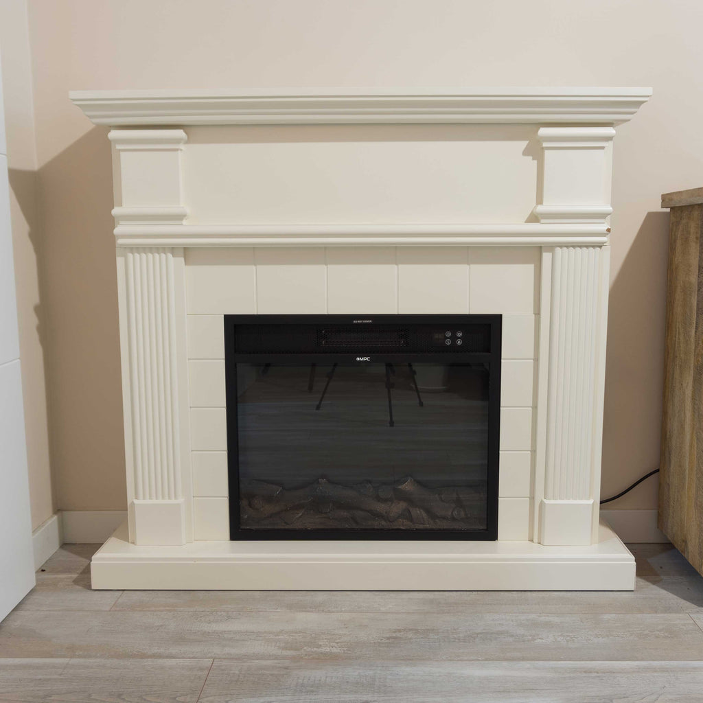 Camino Elettrico da Pavimento 114x102,3x28,2 cm Effetto Fiamma 1500W Sined Caldera Bianco