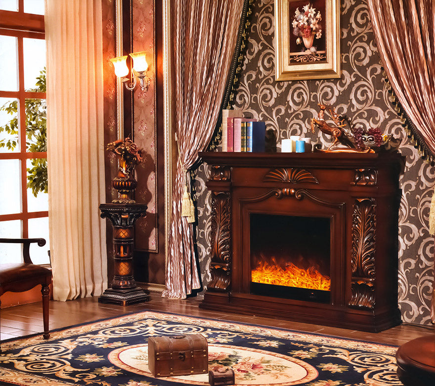 Camino Elettrico da Pavimento 116x150x33 cm Effetto Fiamma 1500W Provance Marrone