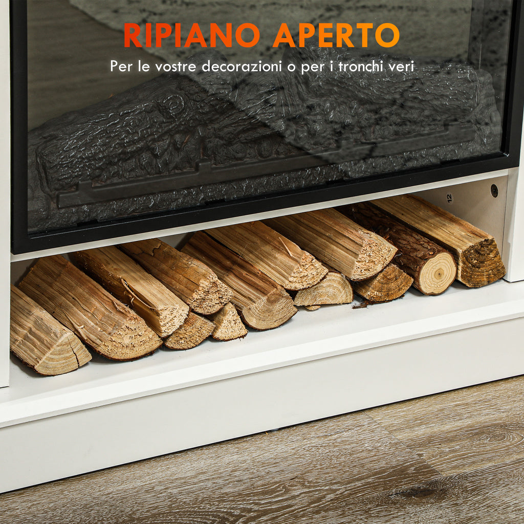 Camino Elettrico da Pavimento 1800W con Fiamma a 3 Intensità e Telecomando 117x30x100 cm Bianco