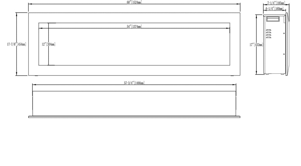 Camino Elettrico da Pavimento 45,4x152,4x18,5 cm Effetto Fiamma 1500W Racy 60 Nero