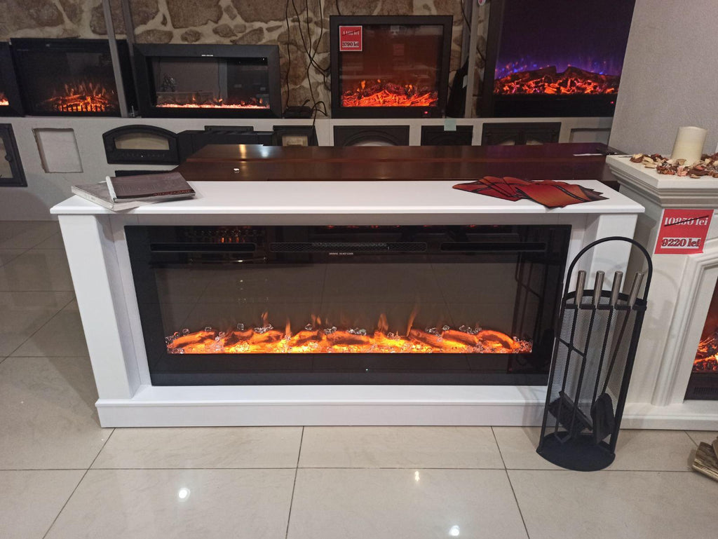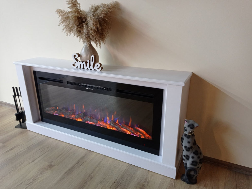 Camino Elettrico da Pavimento 72,5x158x30 cm Effetto Fiamma 1500W Bernard & Hermes Bianco