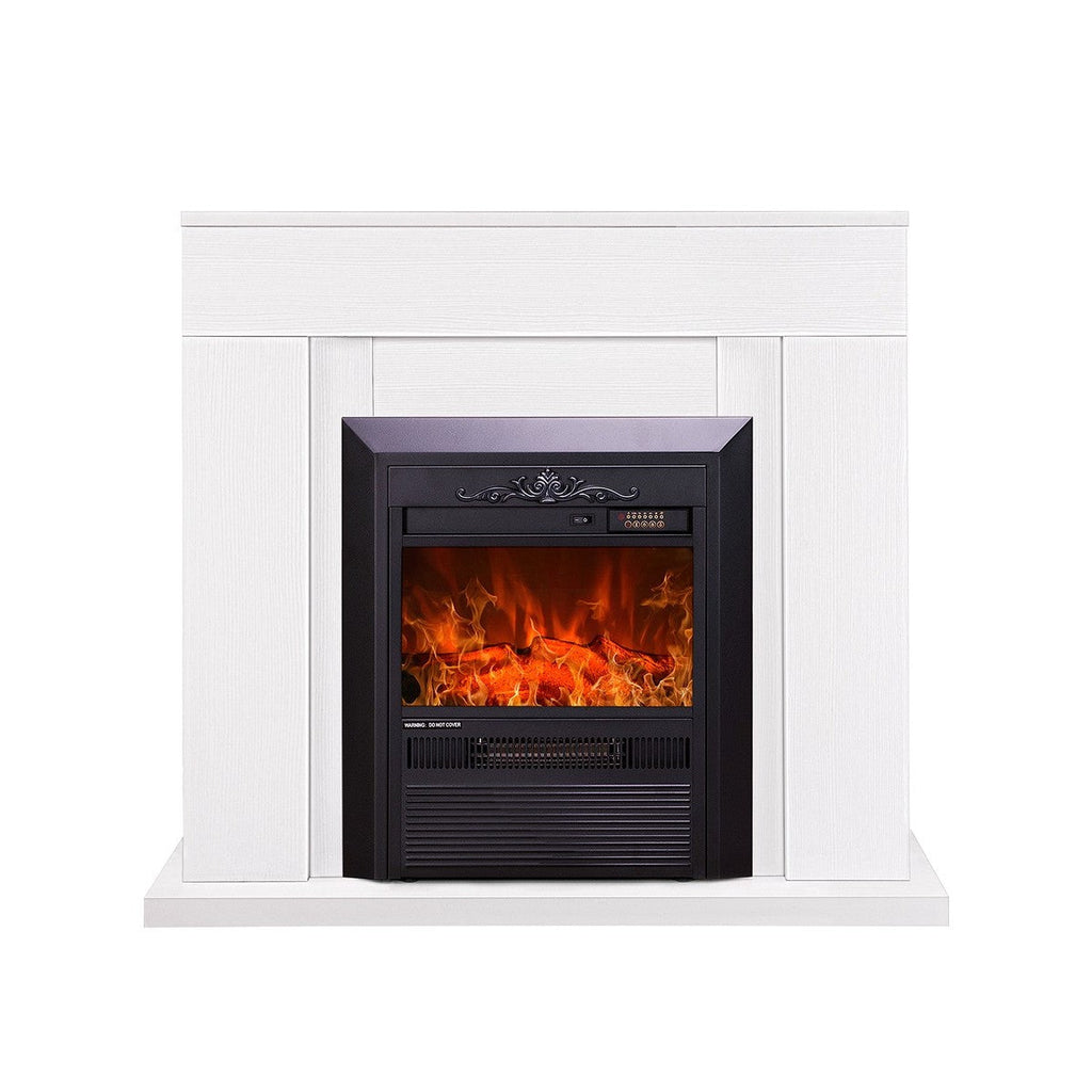 Camino Elettrico da Pavimento 85x95x30 cm Effetto Fiamma 2000W Arthur & Cristina Bianco