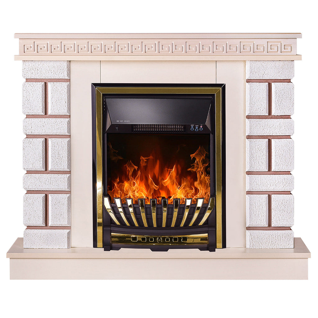 Camino Elettrico da Pavimento 87,4x108x24,5 cm Effetto Fiamma 2000W Nazarii mini & Meridian Avorio