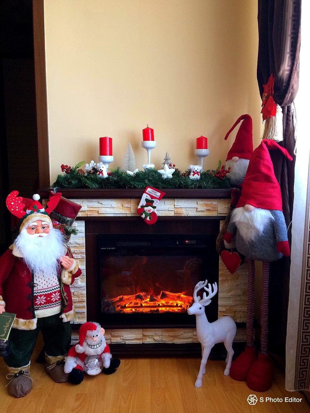 Camino Elettrico da Pavimento 88x118x30,5 cm Effetto Fiamma 1500W Stone & Lorance Noce