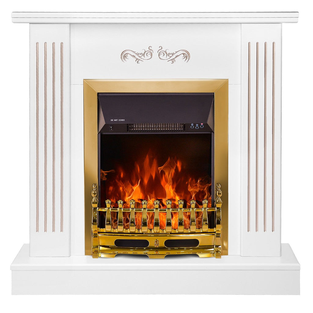 Camino Elettrico da Pavimento 90,5x94x26,5 cm Effetto Fiamma 2000W Smile & Galileo gold Bianco
