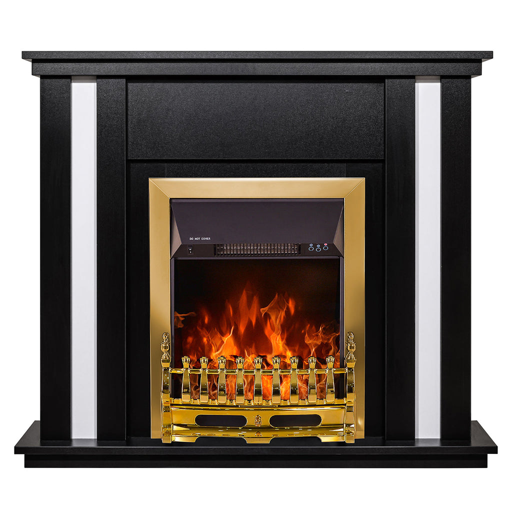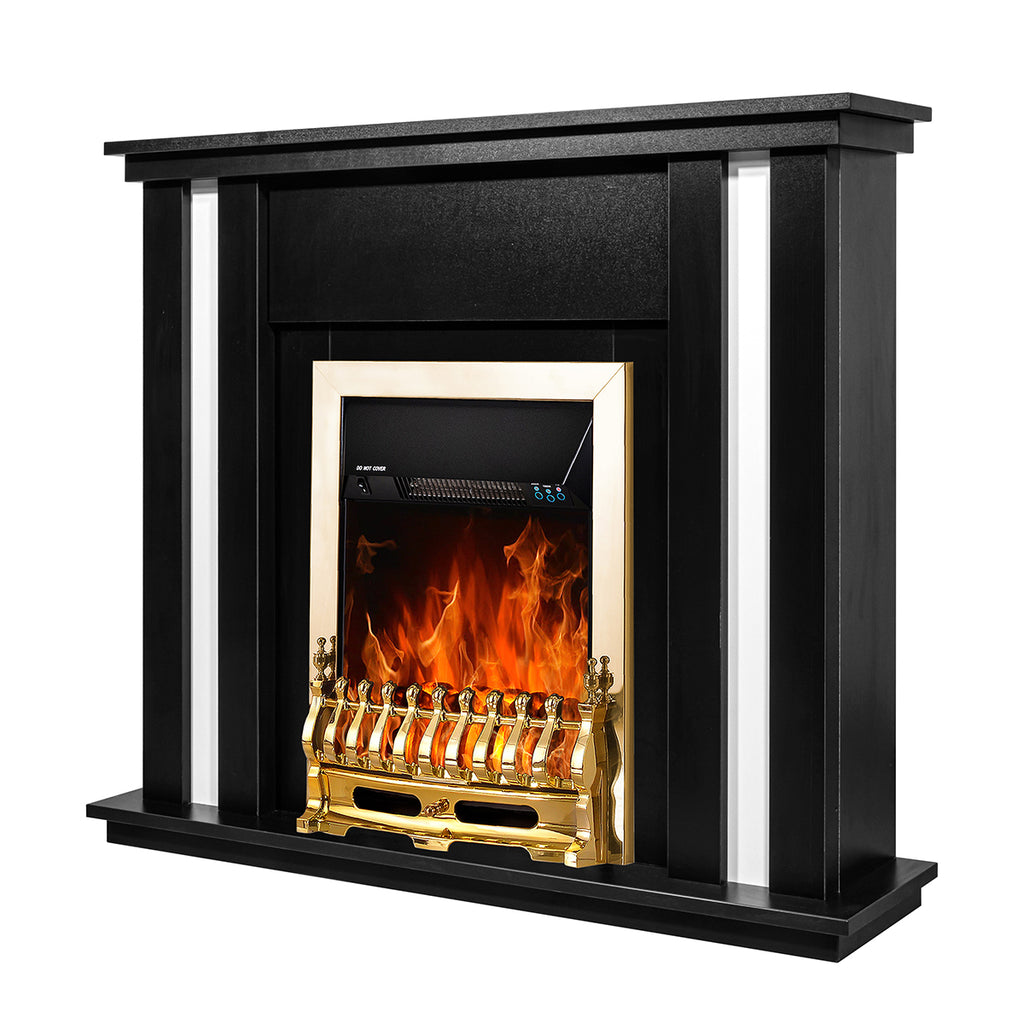 Camino Elettrico da Pavimento 95x110x27 cm Effetto Fiamma 2000W Gustavo & Galileo gold Nero/bianco
