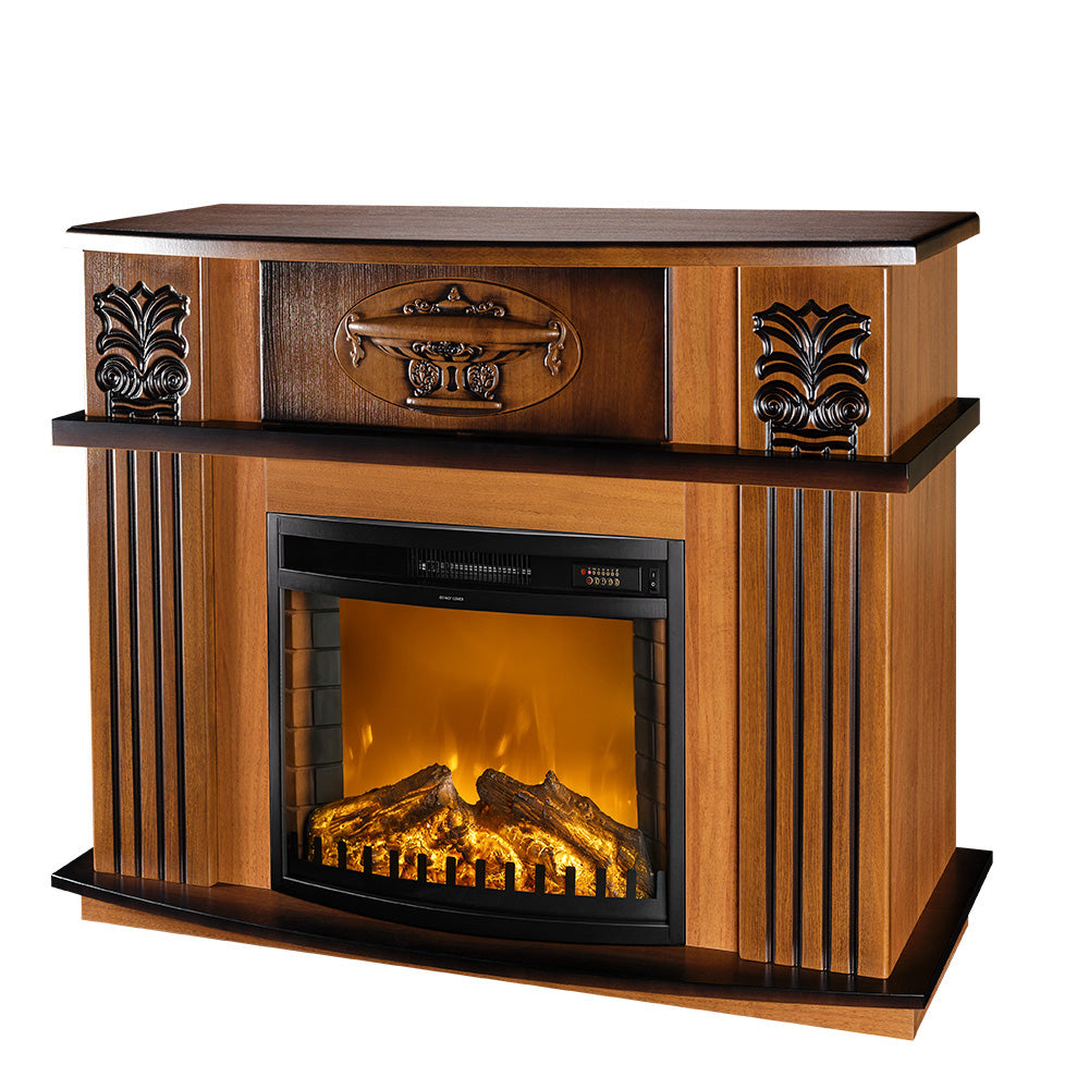 Camino Elettrico da Pavimento 96,3x120x31,8 cm Effetto Fiamma 1500W Roma mini & Zakinthos Noce
