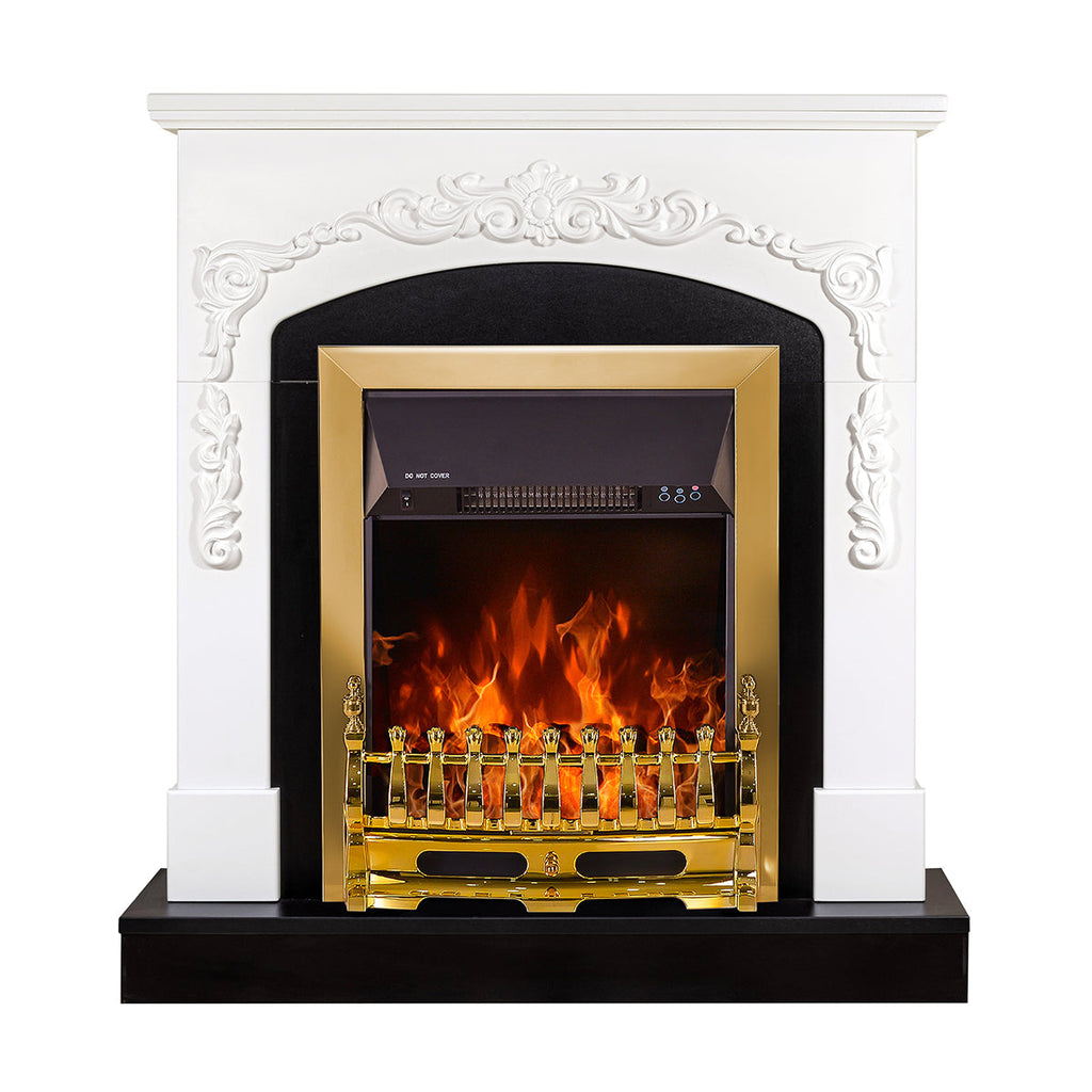 Camino Elettrico da Pavimento 97,5x90x25 cm Effetto Fiamma 2000W Casanova & Galileo gold Bianco/nero