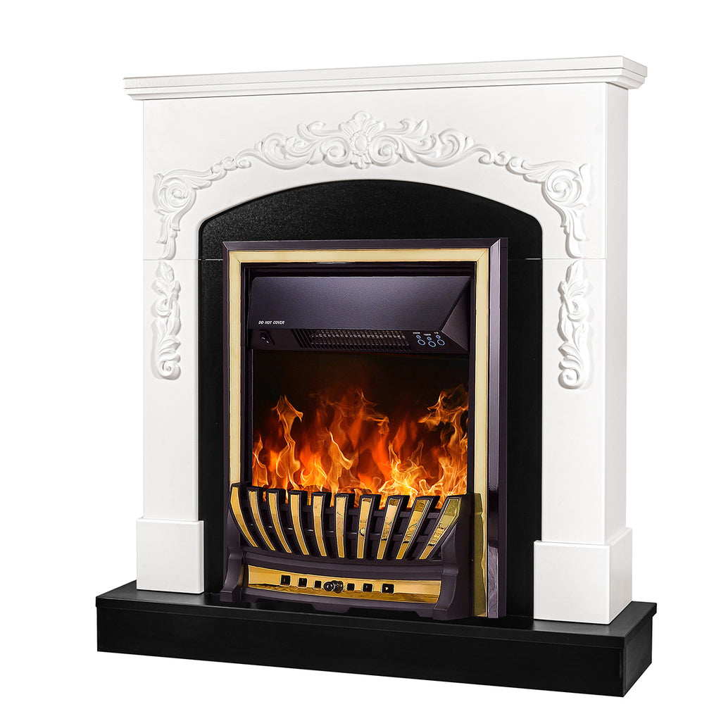 Camino Elettrico da Pavimento 97,5x90x25 cm Effetto Fiamma 2000W Casanova & Meridian Bianco/nero