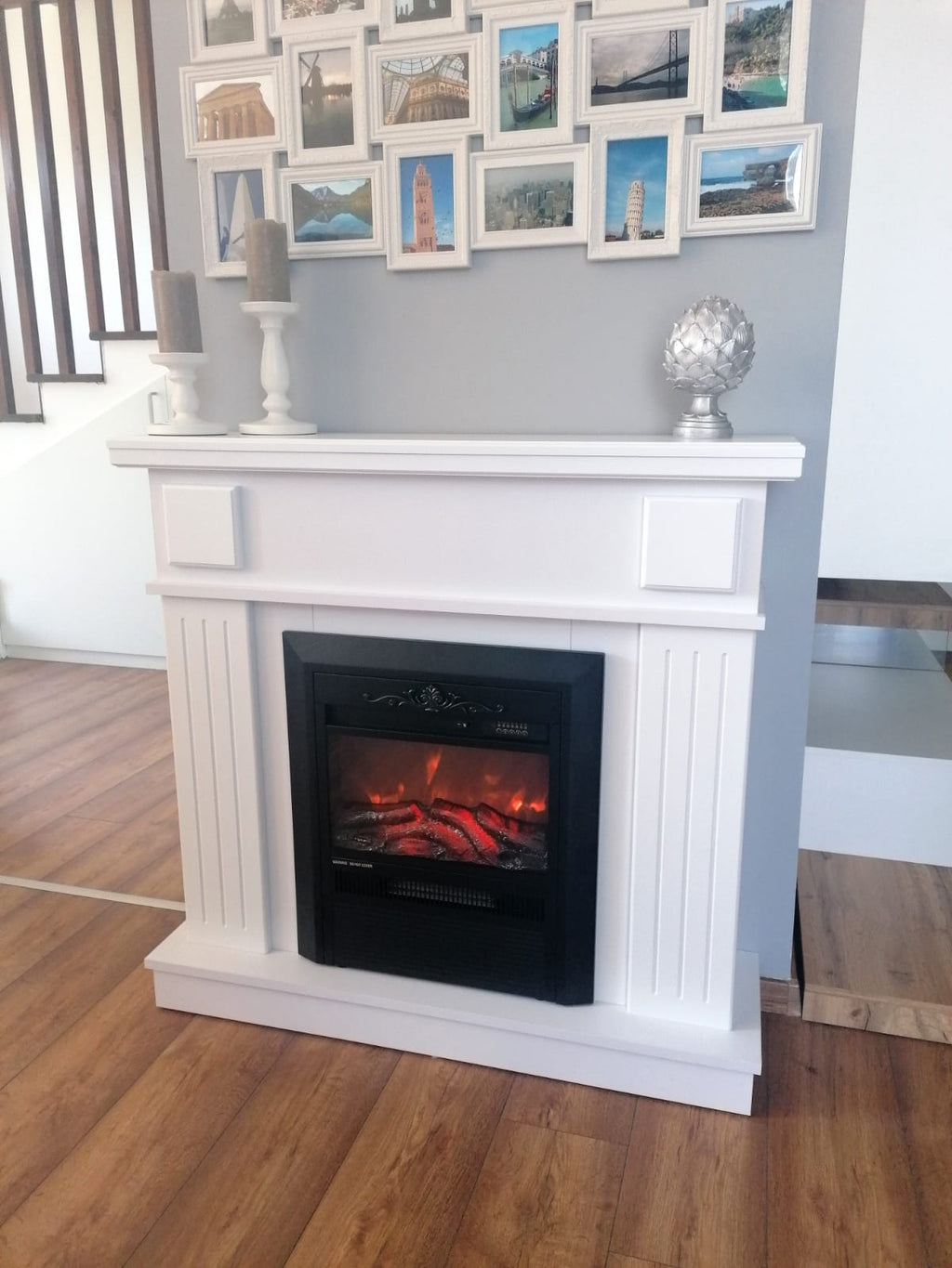 Il set da camino Marina & Cristina sarà il gioiello di casa tua. Il portale Marina combina perfettamente stili classici e moderni. È fatto su bianco, con linee rigorose su colonne. La natura della fiamma del camino elettrico Cristina non lascerà nessuno indifferente. Il camino funziona con riscaldamento e senza riscaldamento, il che significa che puoi goderti un ambiente luminoso in qualsiasi momento.Caratteristiche Tecniche
