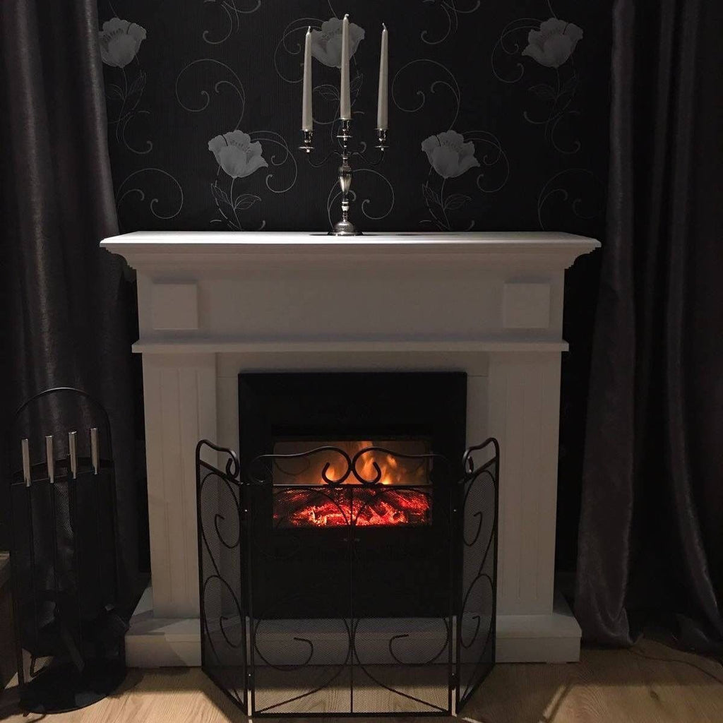 Camino Elettrico da Pavimento 99,7x103,4x27 cm Effetto Fiamma 2000W Marina & Cristina Bianco
