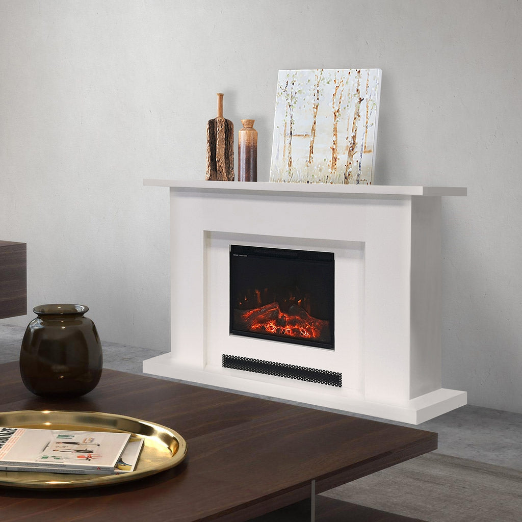 Cheminée Electrique Au Sol Effet Flamme 1500W Chanel Blanc