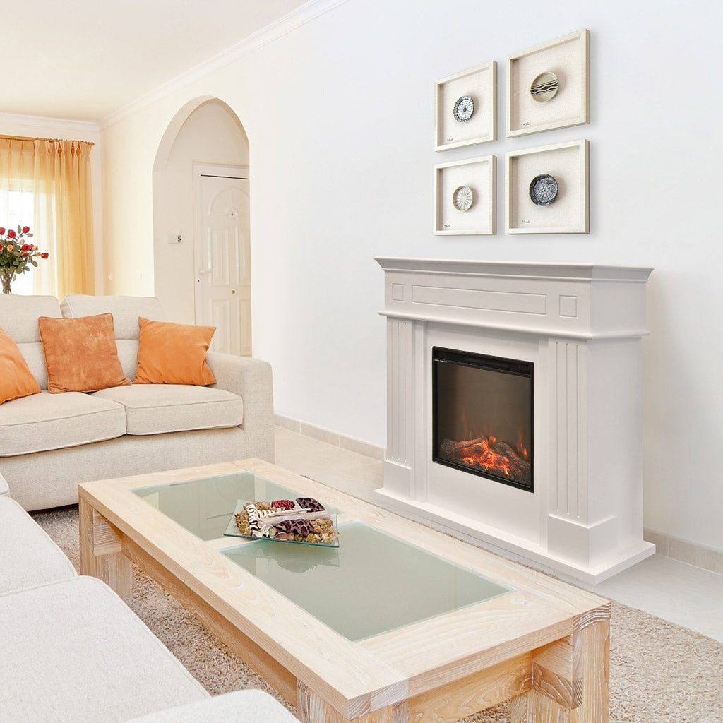 Cheminée Electrique Sol Effet Flamme 1500W Dalya Blanc