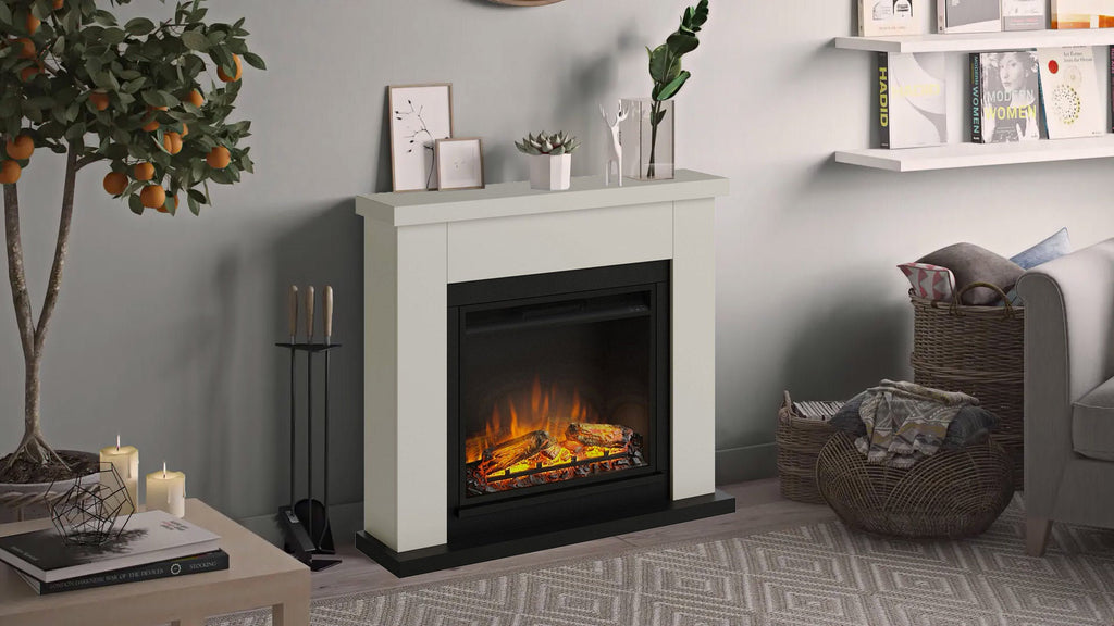 Cheminée électrique à cadre en bois Fraud 1500 W avec insert de cheminée électrique de 23 pouces, télécommande, couleur beige clair [Classe énergétique A].