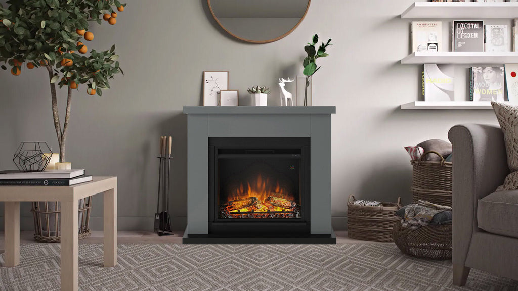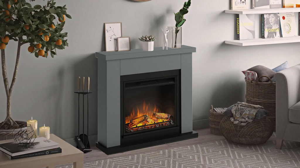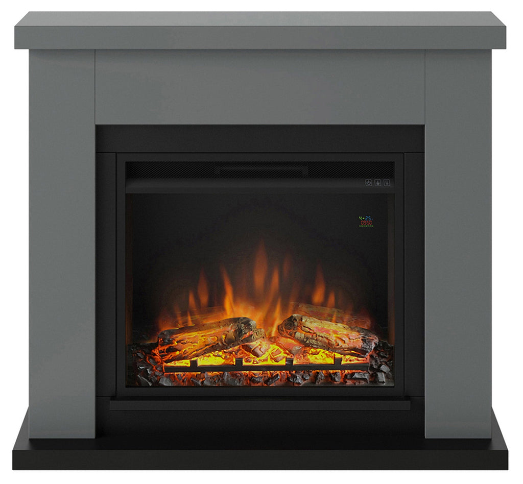 Cheminée électrique Fraud avec cadre en bois 1500 W avec insert de cheminée électrique de 23 pouces, télécommande, couleur gris foncé [Classe énergétique A].