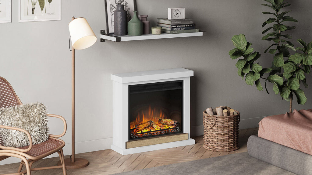 Cheminée électrique à cadre en bois Hagen 1500W avec foyer électrique encastrable de 23 pouces, télécommande, couleur blanche.