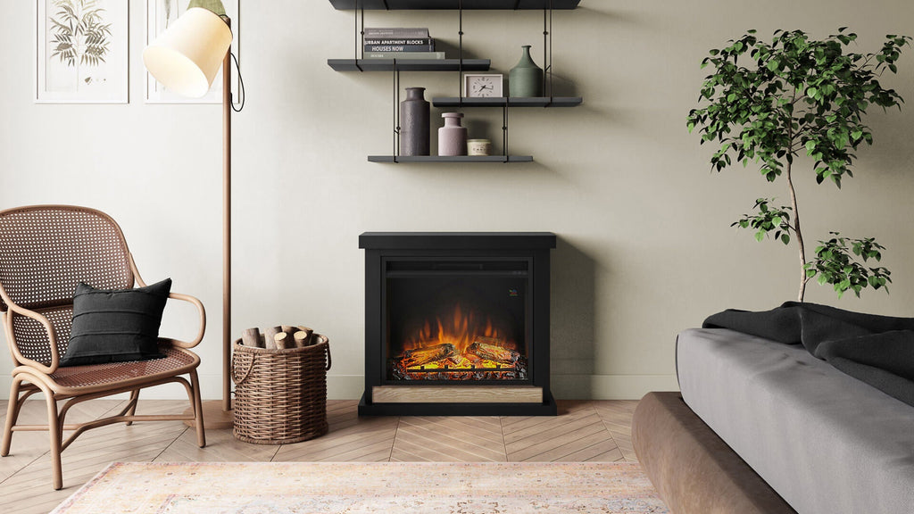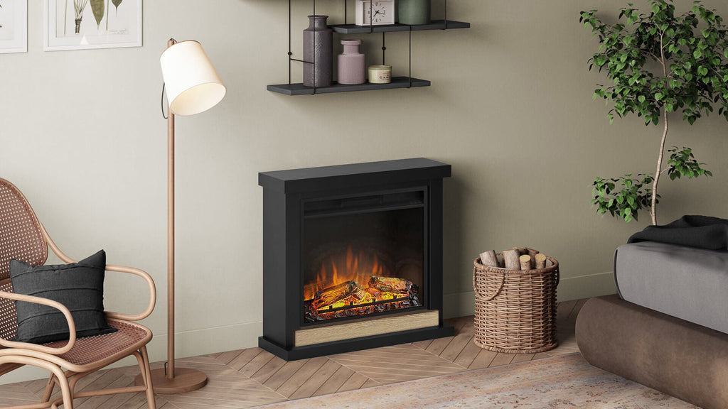 Cheminée électrique à cadre en bois Hagen 1500W avec foyer électrique encastrable de 23 pouces, télécommande, couleur noire.