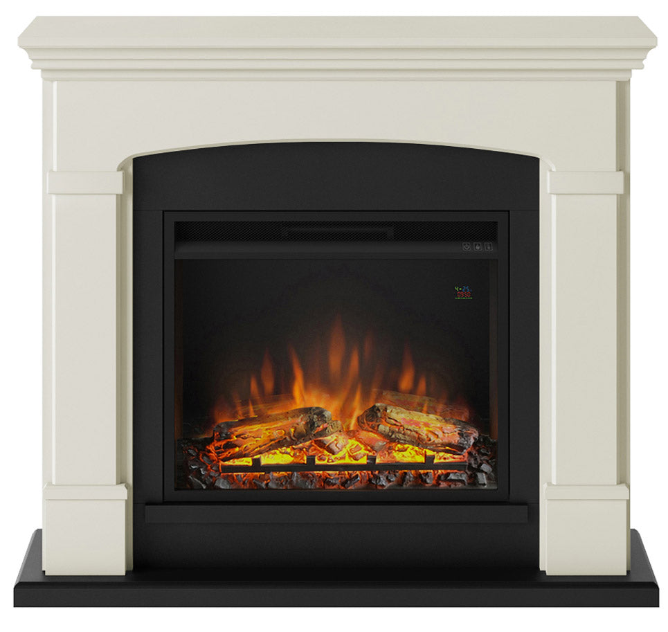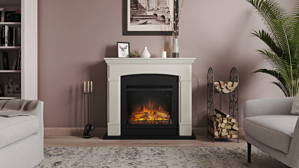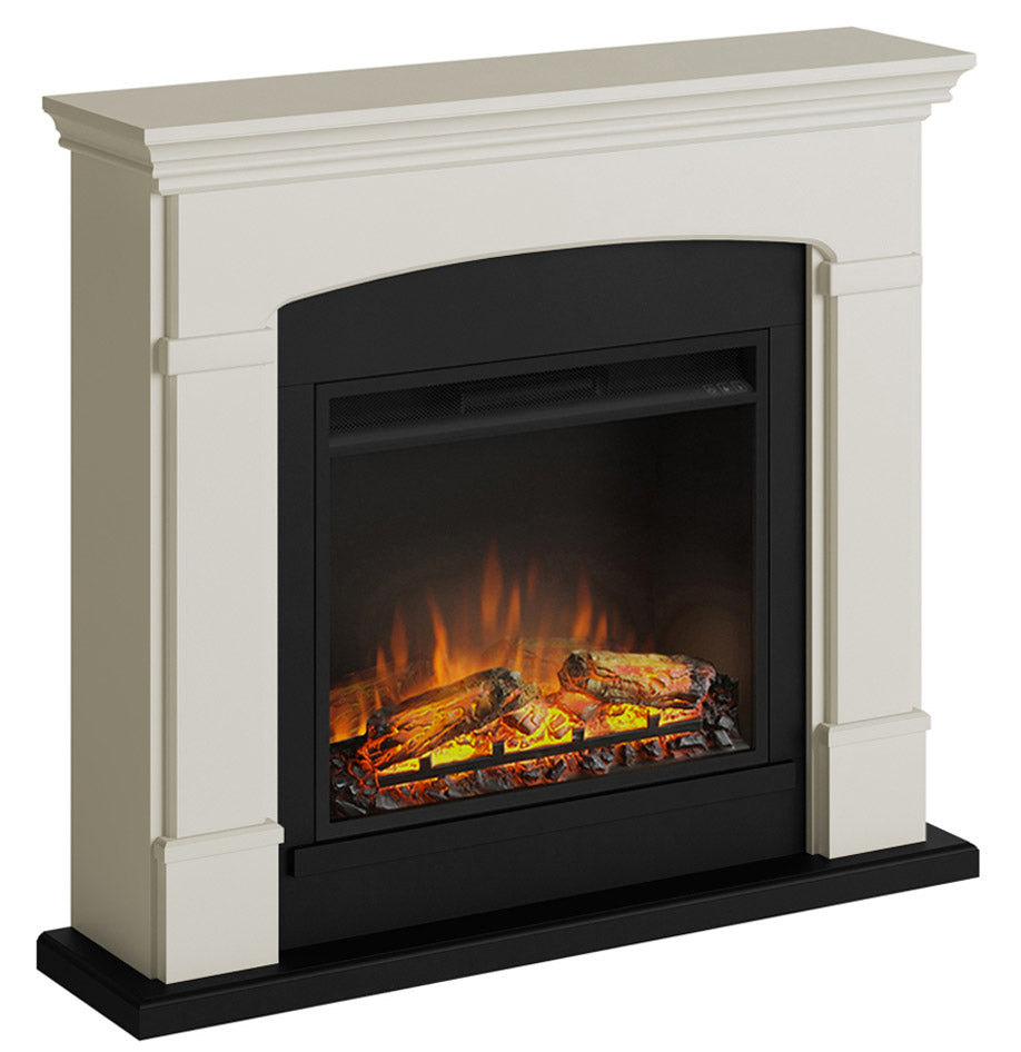 Foyer électrique Helmi à cadre en bois 1500W avec foyer électrique encastrable de 23 pouces, télécommande, couleur blanc crème.