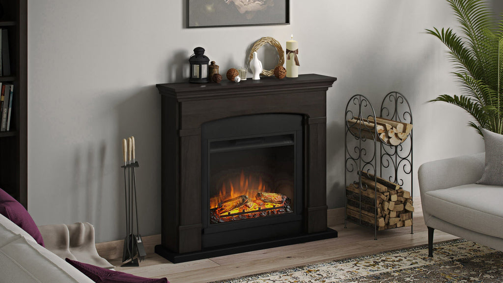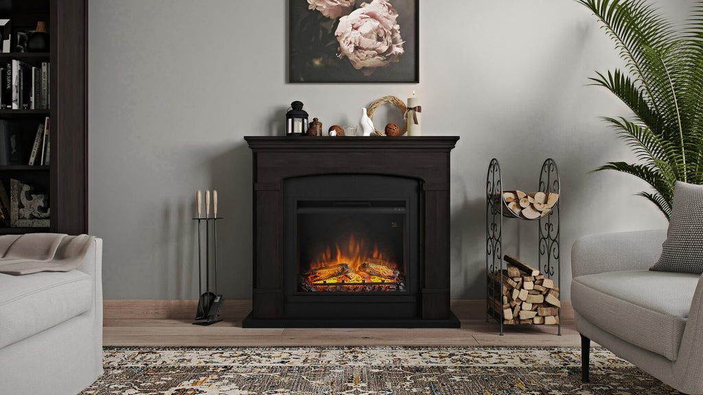 Foyer électrique Helmi avec cadre en bois 1500W avec foyer électrique encastrable de 23 pouces, télécommande, couleur expresso wengé.