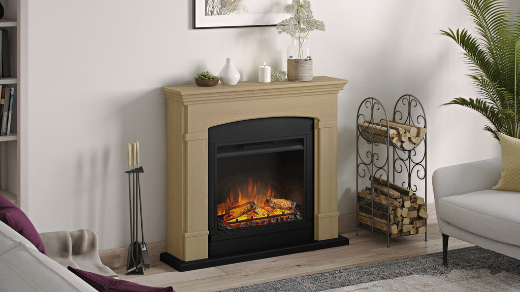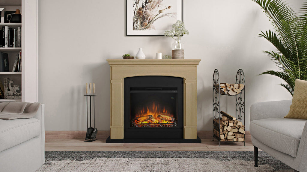 Cheminée électrique Helmi à cadre en bois 1500W avec insert de cheminée électrique de 23 pouces, télécommande, couleur chêne naturel.