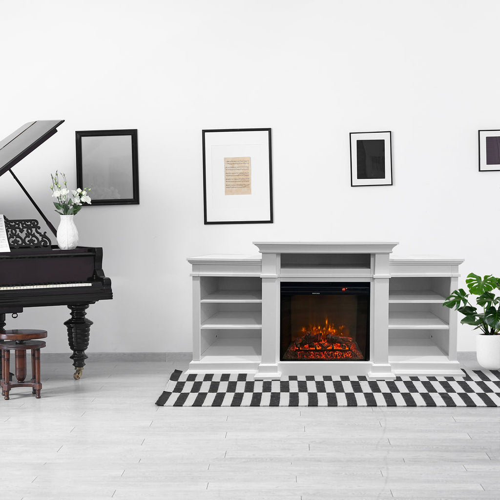 Cheminée Electrique au Sol Effet Flamme 179x48x85 cm 900W/1800W en Bois Blanc