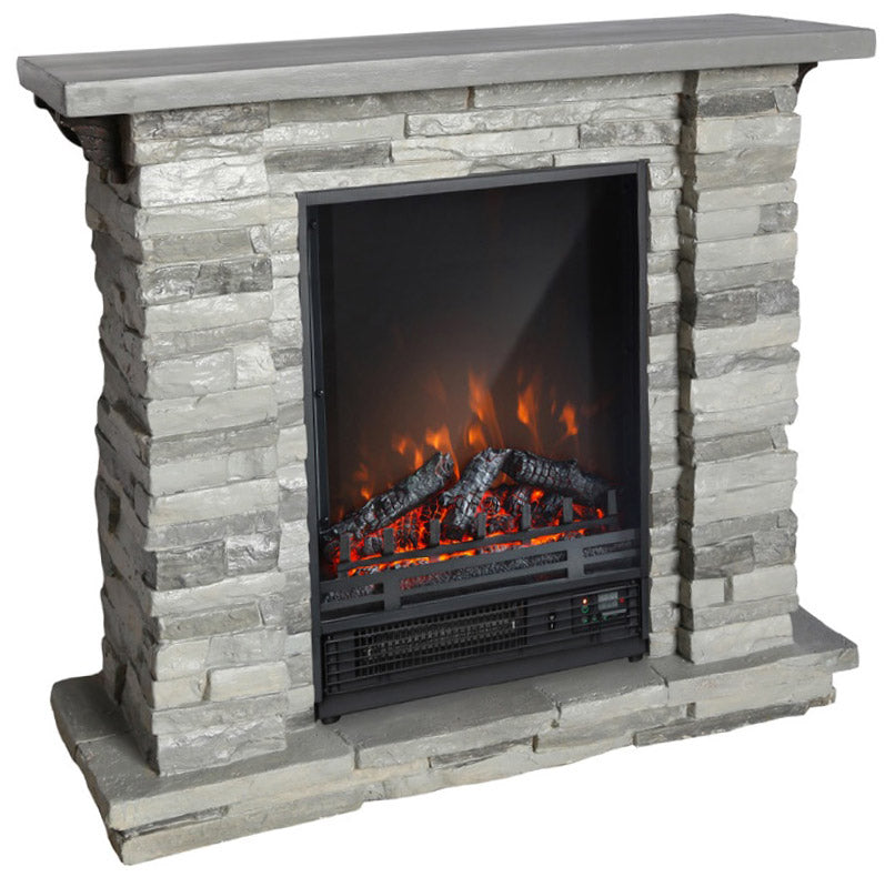 Cheminée Electrique Sol Effet Flamme 1800W Tugullio Gris Effet Pierre
