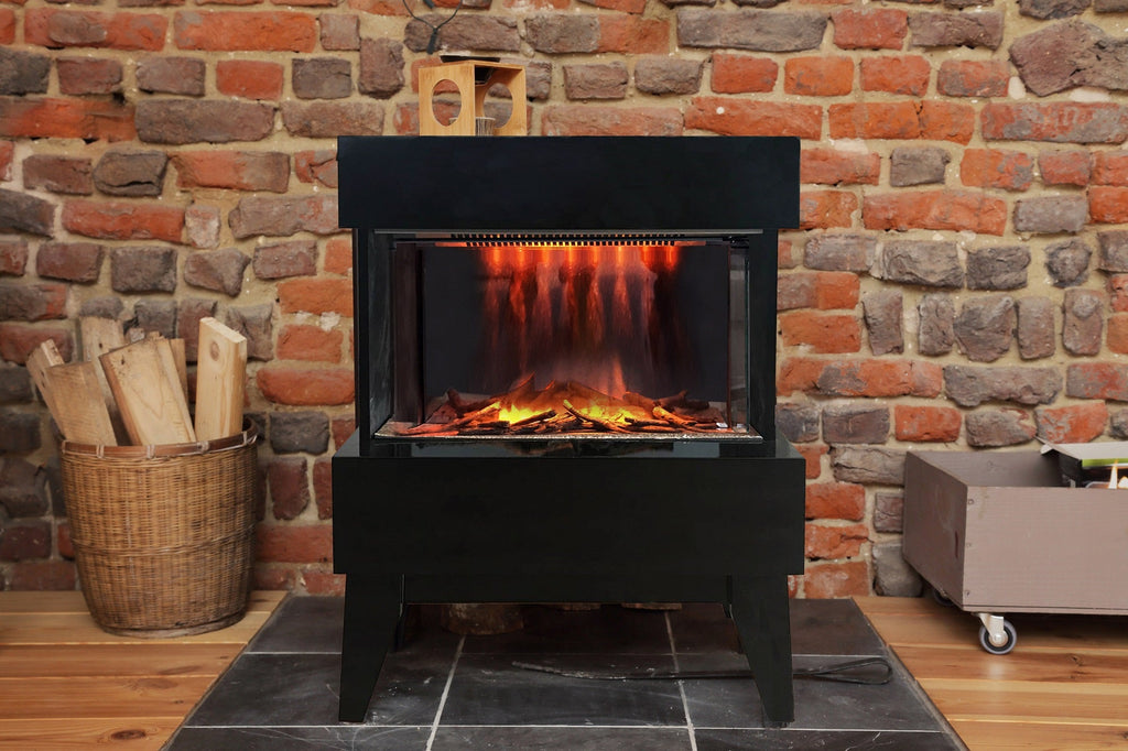 Cheminée Electrique Sol Effet Flamme 2000W Chemin'Arte Vidrio Noir