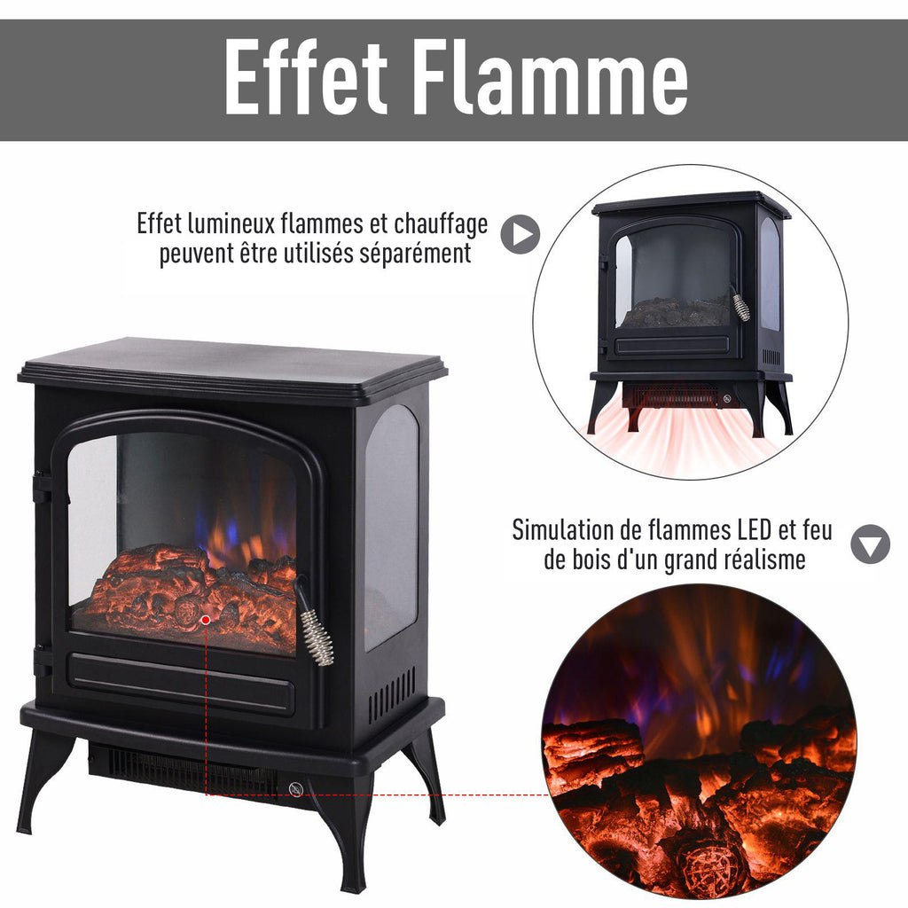 Cheminée électrique au sol 41x25,4x52 cm 750/1500W Effet Flamme Noir