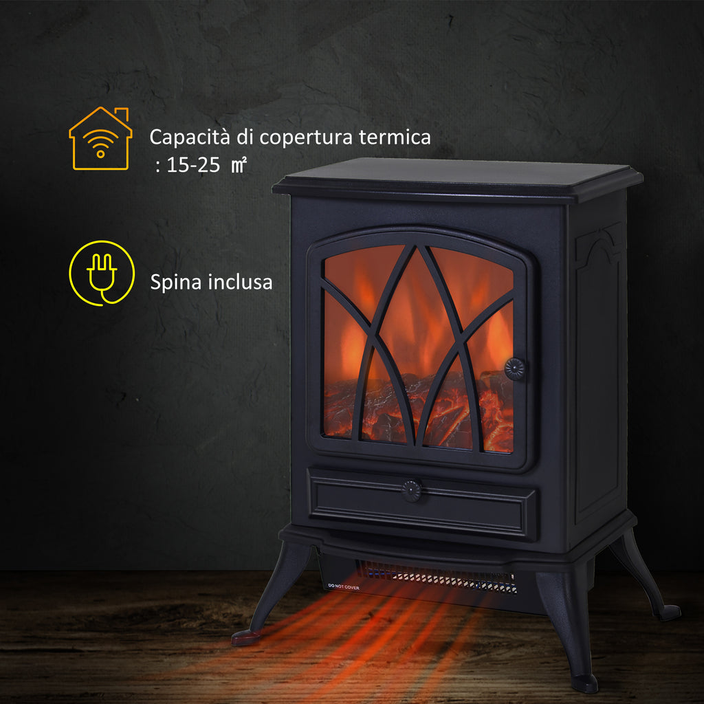 Camino Elettrico da Terra Effetto Fiamma in Stile Retrò Termostato 1000-2000W Nero