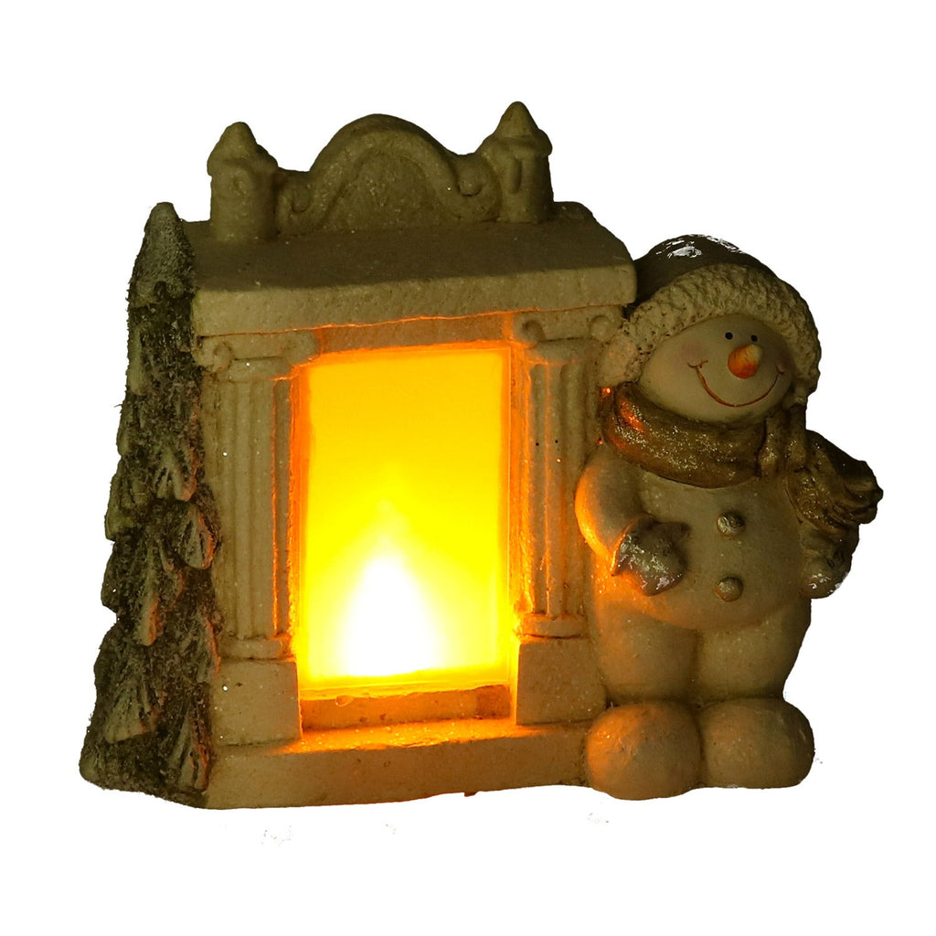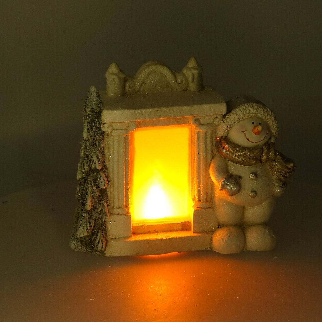 - Cheminée en résine avec bonhomme de neige led blanc cm 27x12xh23