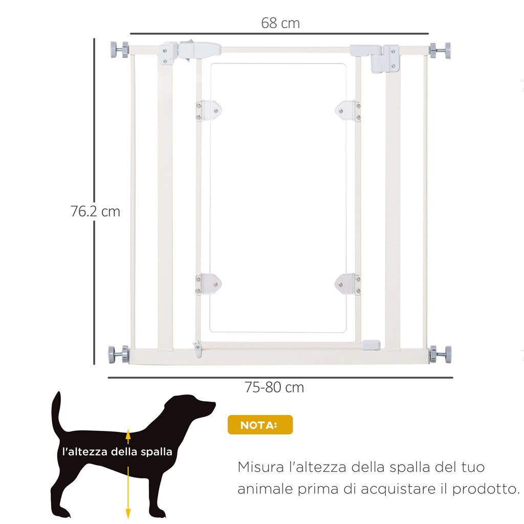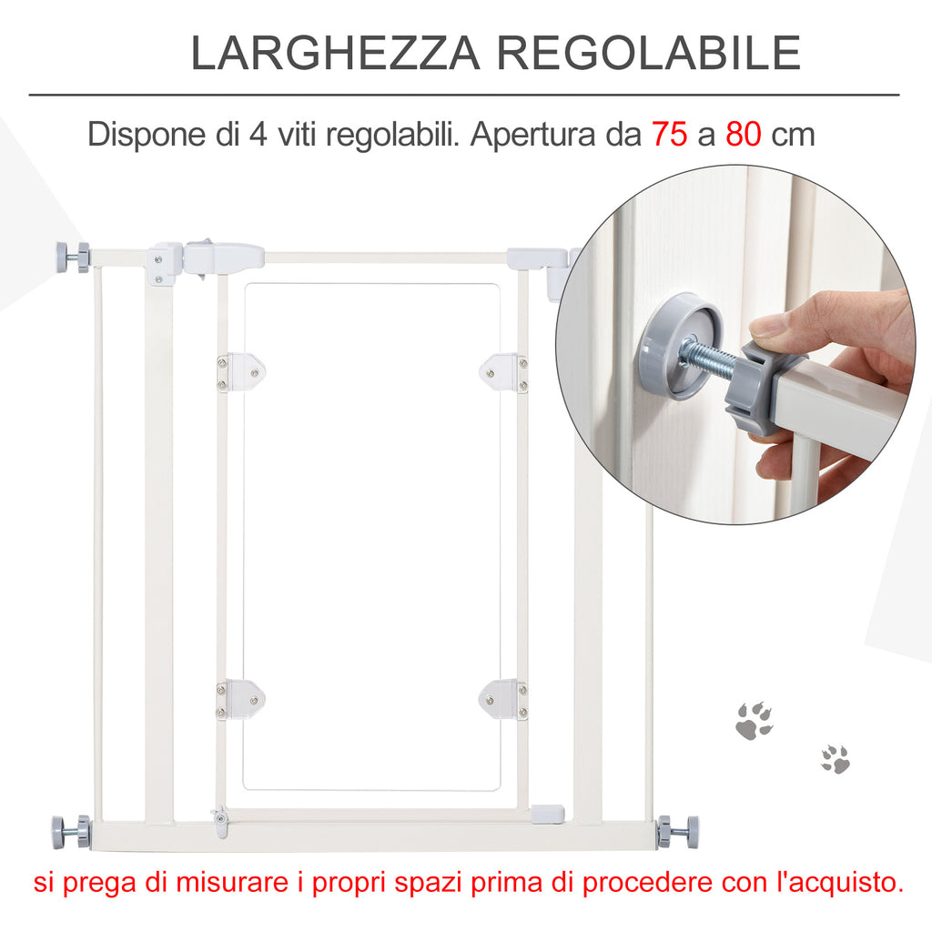 - DIMENSIONS : Dimensions hors tout : 76,9-81,9D x 76,2Hcm (largeur réglable avec des vis). Taille du panneau acrylique : 31,5D x 64,5Hcm. Largeur d'entrée : 49,8 cm. Distance entre poteaux : 5 cm. REMARQUE : La porte convient aux passages de 76,9 à 81,9 cm de large, veuillez mesurer vos espaces avant d'acheter.