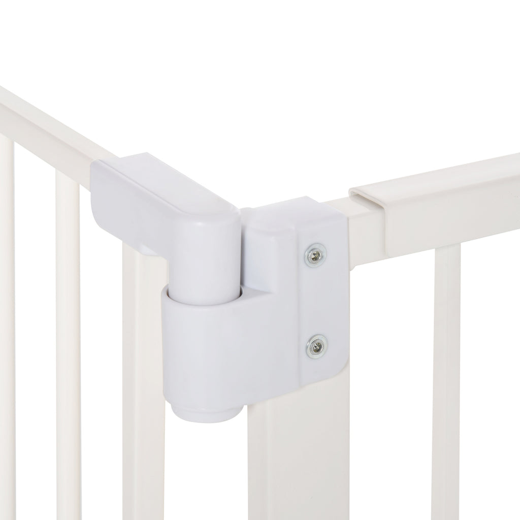 - DUE CHIUSURE GIREVOLI: Presenti su entrambi i lati inferiori, le chiusure del cancelletto per cani si aggiungono alla quella in alto, che può essere aperta con una sola mano facendo scorrere entrambe le estremità contemporaneamente e sollevandole
