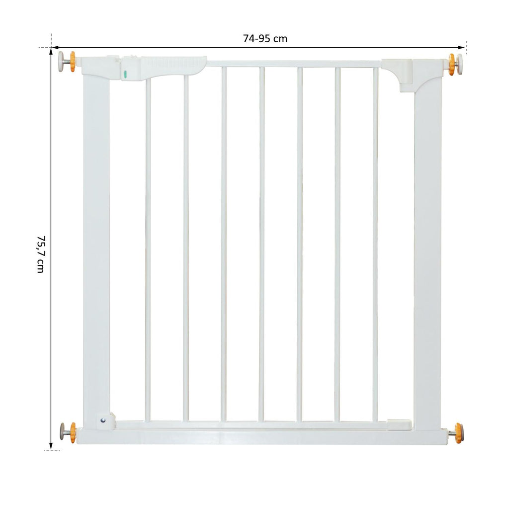 Vous recherchez une barrière de sécurité pour vos animaux ? Cette porte en métal blanc vous permet de garder vos chiens et chats en sécurité rapidement et facilement. Grâce à la technologie à pression, vous pouvez l'installer en un instant : il suffit de fixer le portail entre deux murs, sans avoir besoin d'utiliser une perceuse pour faire des trous. Grâce à sa conception extensible, vous pouvez ajuster sa largeur (74-95 cm) selon les besoins de votre espace. Protégez dès maintenant vos amis à quatre pattes avec cette barrière pratique !