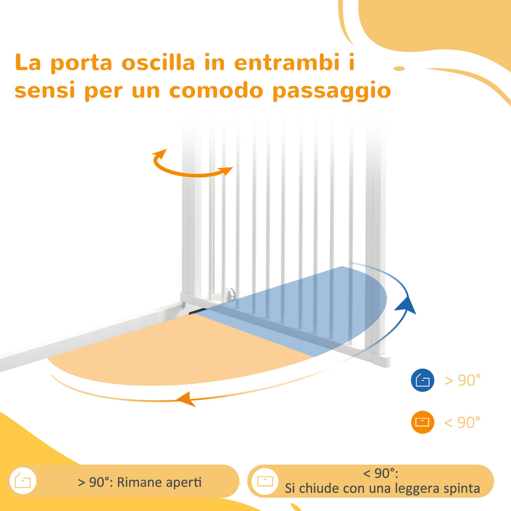Cancellino per Cani Regolabile con 2 Estensioni 77-105x120 cm in Acciaio e Doppio Blocco Bianco