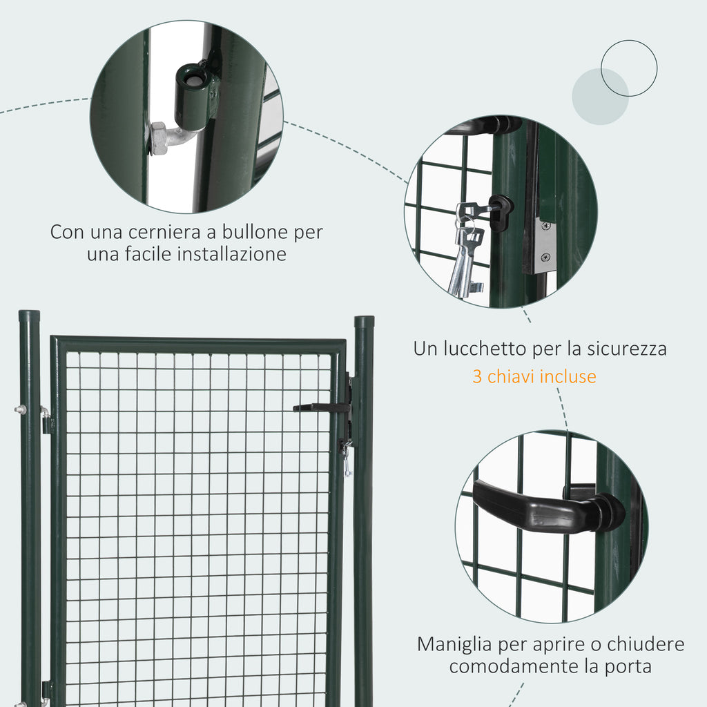 Complétez votre clôture et protégez votre jardin avec ce portail. Moderne et pratique, il est construit en acier antirouille et est équipé de deux poteaux de support robustes et d'une petite porte avec poignée. Facile à installer, comprend 3 clés pour la serrure.