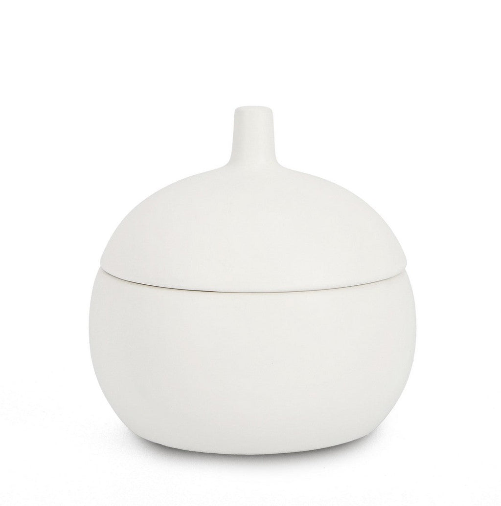 Candela con Coperchio Ø14x14 cm in Ceramina Canister Bianco