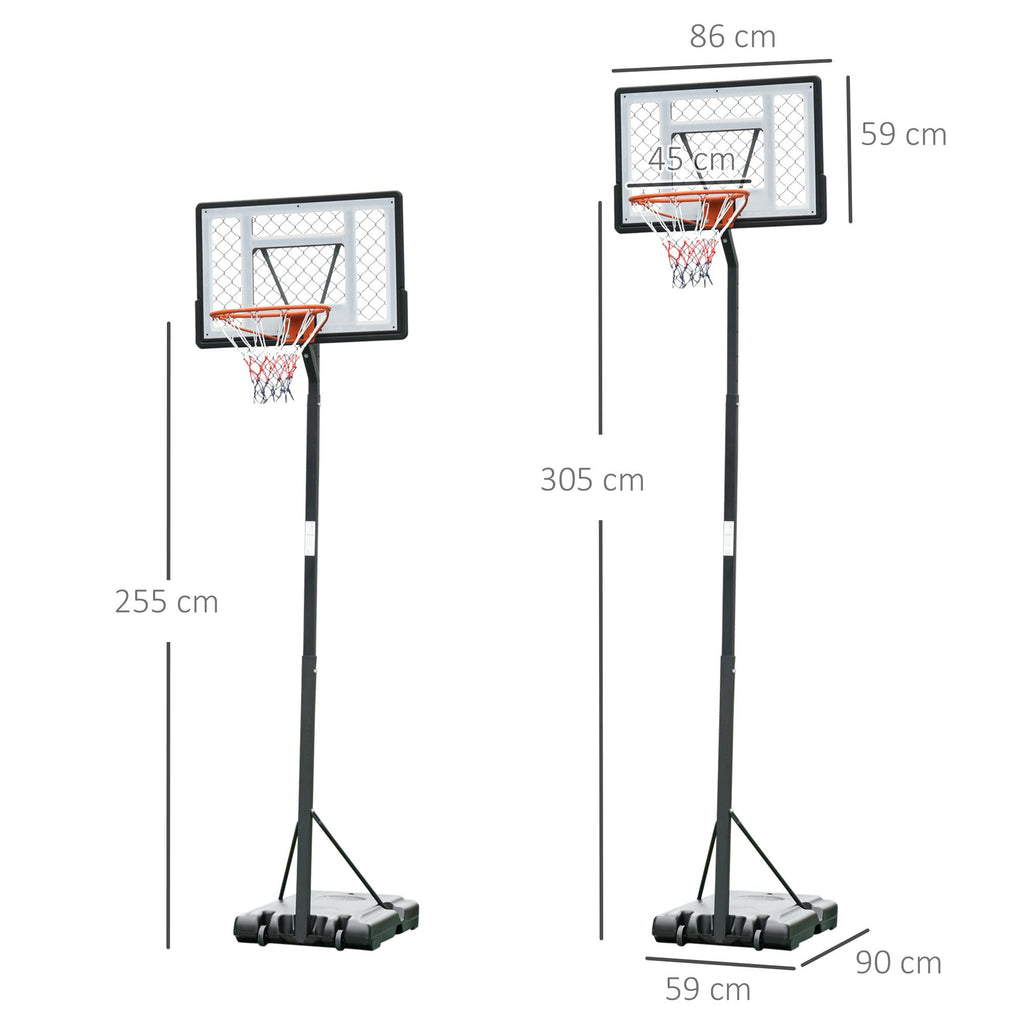 Panier de Basket Extérieur Hauteur Réglable 302-352 cm en Acier avec Roues Noires