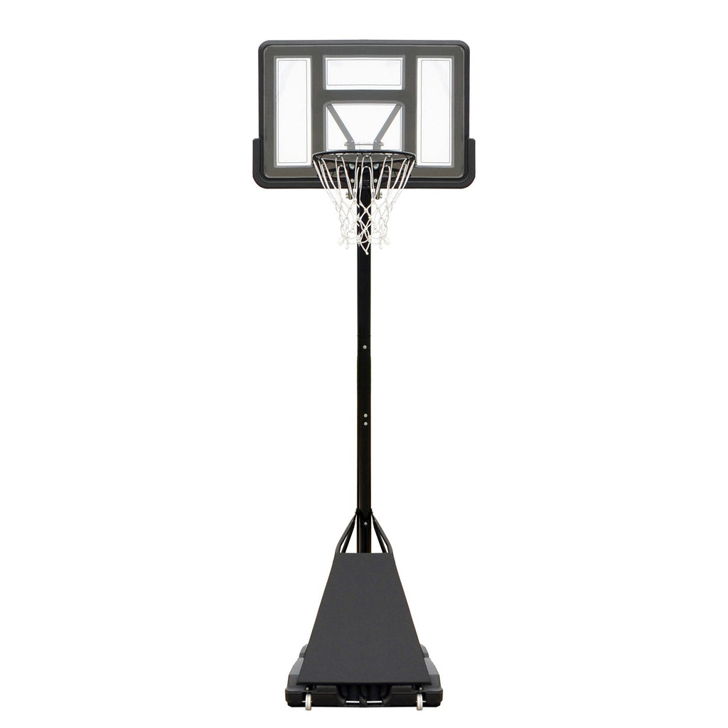 La piantana basket è un accessorio versatile e resistente, ideale per gli appassionati di questo sport. Grazie all'altezza regolabile del canestro da 245 a 305 cm, può essere adattato alle esigenze di giocatori di diverse altezze. Il tabellone in policarbonato trasparente è infrangibile e montato su un supporto a Y stabile. Il canestro in metallo con diametro di 45 cm assicura robustezza e durata nel tempo. La base, realizzata in plastica zavorrabile, può contenere 64 kg di sabbia e 83 kg di sabbia, garantendo stabilità e sicurezza durante l'utilizzo. Inoltre, il sistema di ritorno palla semplifica il recupero della palla dopo ogni tiro.
