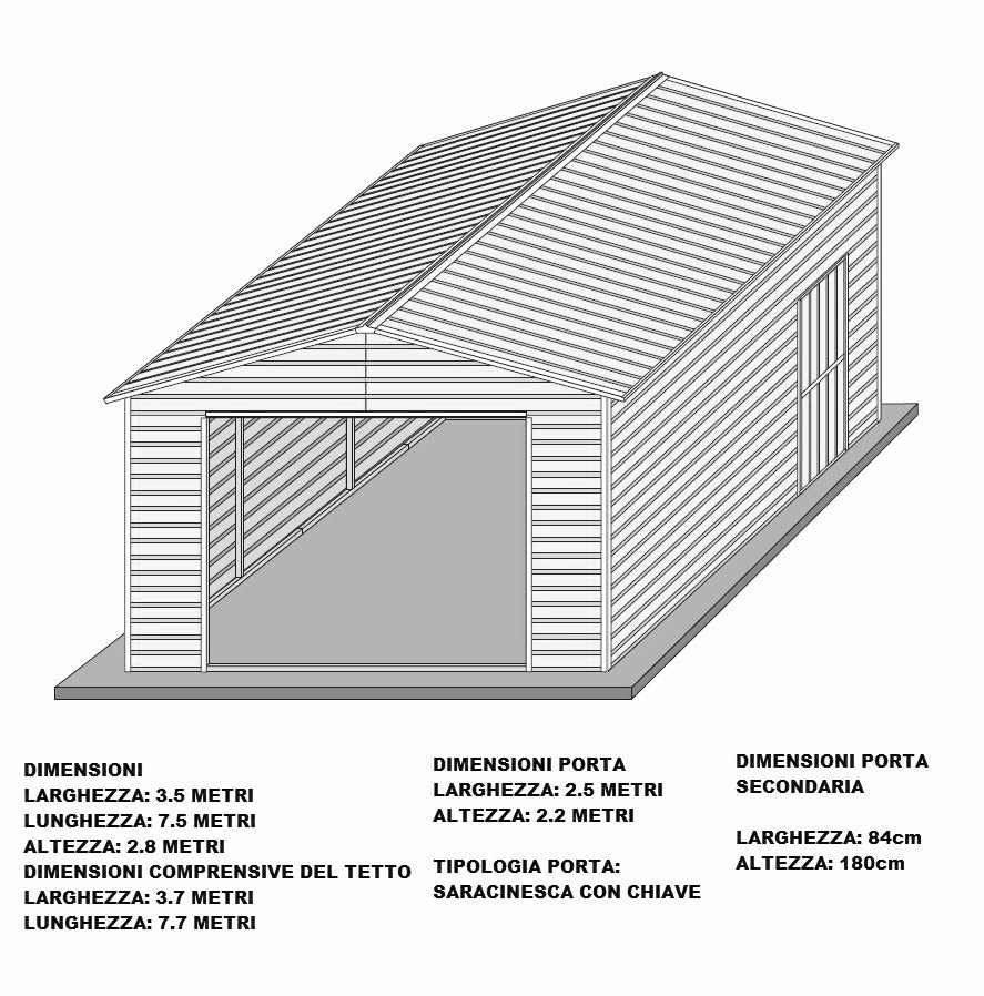 Dimensions extérieures (périmètre uniquement) : 3,50 m (Largeur) x 7,70 m (Longueur) x 2,80 m (Hauteur)