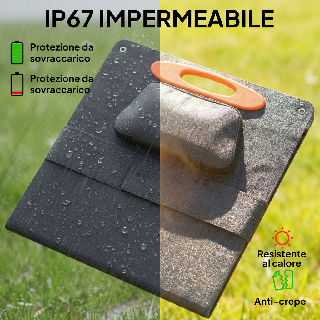 Caricabatteria Solare 100W Pieghevole con Attacco USB-A e USB-C per Ricarica Rapida IP67 Nero