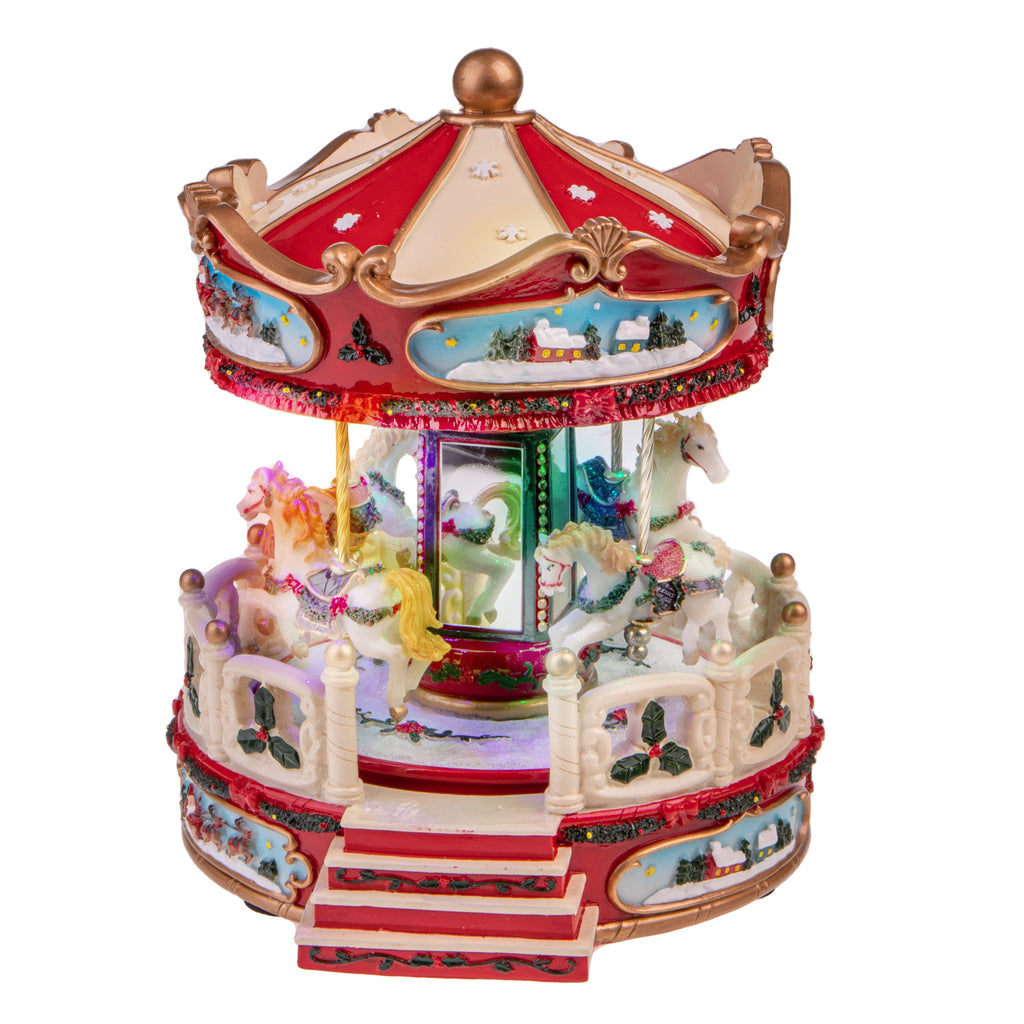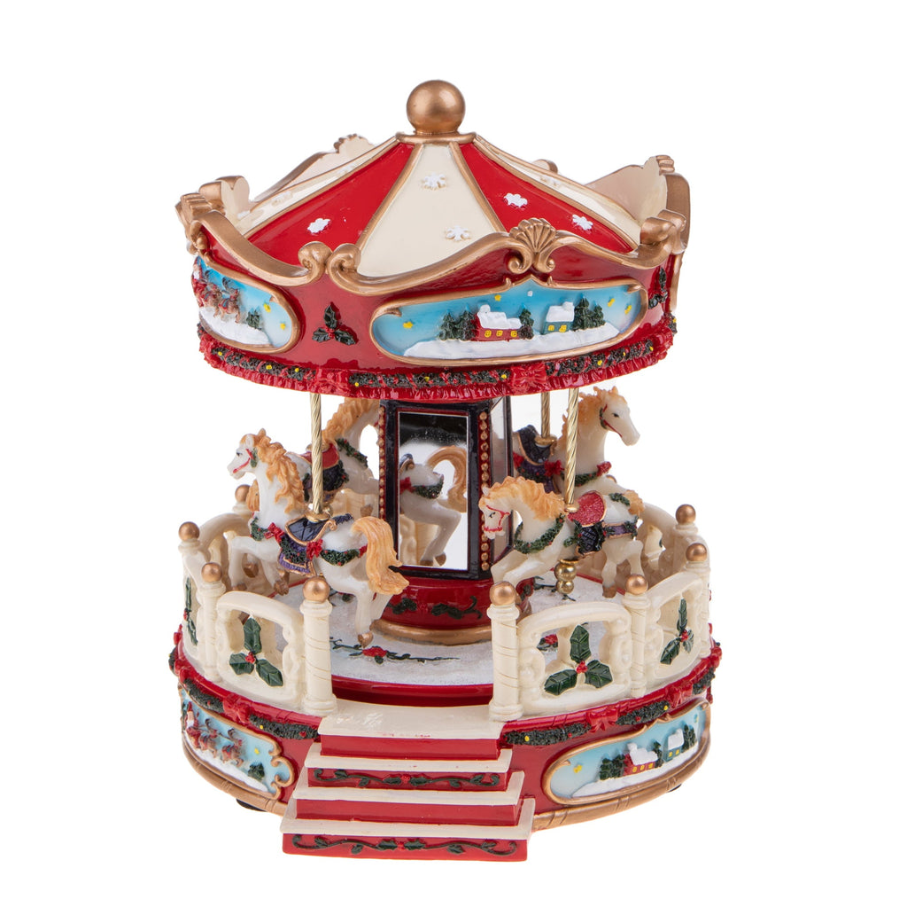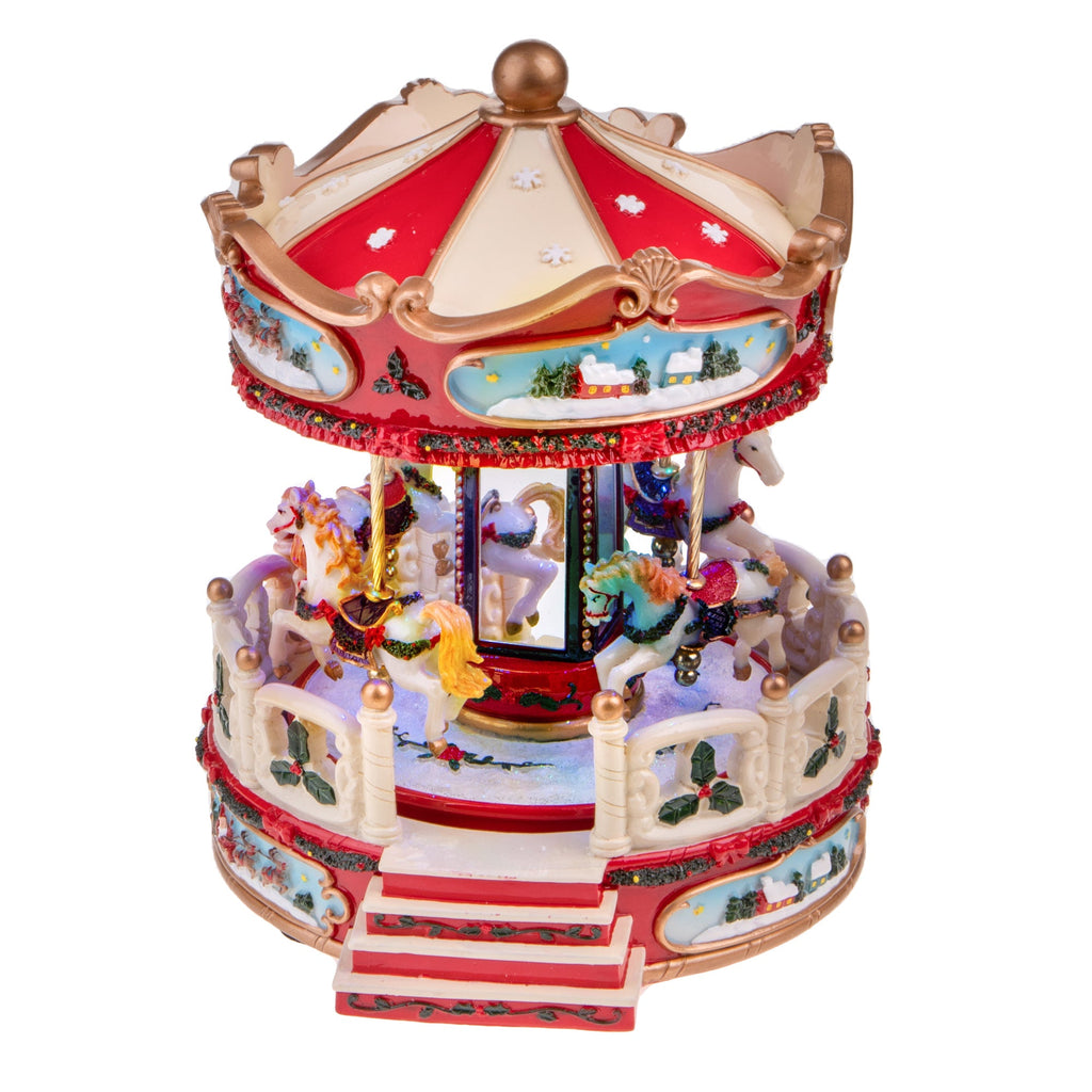 Carrousel de Noël avec Lumières Musique et Mouvement 25 cm