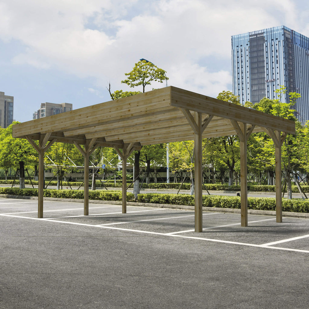 Carpot Garage Double avec Couverture en Bois 605x512 cm