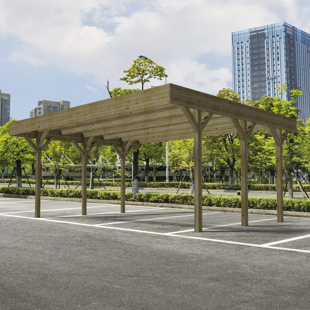 Carpot Double Garage Sans Couverture 605x512 cm en Bois