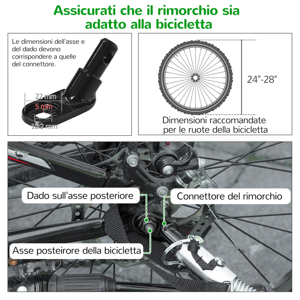 Carrellino Rimorchio per Cani e Animali Domestici da Bicicletta in Acciaio e Tessuto Oxford Verde
